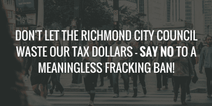 Richmond families and businesses rely each and every day on natural gas from hydraulic fracturing to keep electricity prices low. Richmond City Council is now considering an irresponsible ban on this practice within its city limits, sending the message that Richmond residents oppose the very method that allows them to affordably and reliably power their lives!