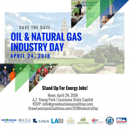 BATON ROUGE — Consumer Energy Alliance (CEA), a national advocate for families and consumers of energy, today announced its support for the Grow Louisiana Coalition’s 2018 Oil & Natural Gas Industry Day on Tuesday, April 24, 2018 at 12 noon at the A.Z. Young Park, Louisiana State Capitol. The event provides an opportunity for business leaders, government officials, and the community to learn more about the energy industry and the critical role it plays in Louisiana, now and in the future, through new technology and innovation that is vital for the sector to thrive and grow.