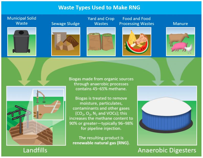 RNG as a significant “green” power or home heating supply isn’t just a pipe dream either. It serves as a solution to the billions of gallons of animal manure and millions of tons of food waste generated each year in the U.S. Agricultural opponents decry the methane produced during the industrial process of growing food – and this is one of the leading opportunities to do something about it . The government in 2014 estimated that the U.S. could support at least 13,000 biogas facilities fed by such waste, and they would produce enough renewable energy to power three million homes.