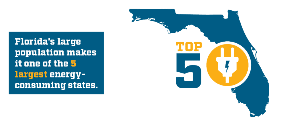 With everything Florida has to offer, it is sometimes easy to forget just how much energy all this requires. The population alone means millions of homes need to be cooled during the hot summers, phones need to be charged, cars need to be fueled to drive to the beach, refrigerators need to be powered to keep locally-produced orange juice cold – and much, much more. And as more than a hundred million tourists from around the world descend on Florida, it is no surprise that the state demands more energy than it produces.