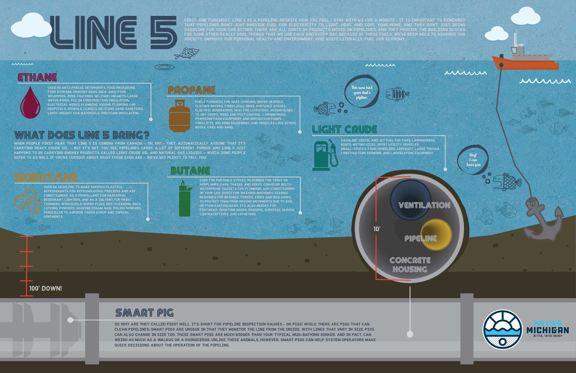 When people first hear that Line 5 is coming from Canada – OH, EH? – they automatically assume that it’s carrying heavy crude oil – but it’s not. You see, pipelines carry a lot of different things, and Line 5 just happens to be carrying energy products called light crude oil and natural gas liquids – which some people refer to as NGLs. If you’re curious about what those even are – we’ve got plenty to tell you! First, it’s…