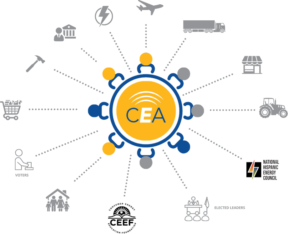 At Consumer Energy Alliance (CEA), we advocate for affordable, reliable, and cleaner energy solutions that benefit families, businesses, and communities. Through strategic policy engagement, coalition building, and consumer outreach, we amplify member voices at the local, state, and national levels. Our efforts include educating the public, connecting members with policymakers, and advancing impactful campaigns like PEOPLE FOR ENERGY. By uniting diverse stakeholders, we ensure energy policies support economic growth, and consumer needs—shaping a better energy future for all.